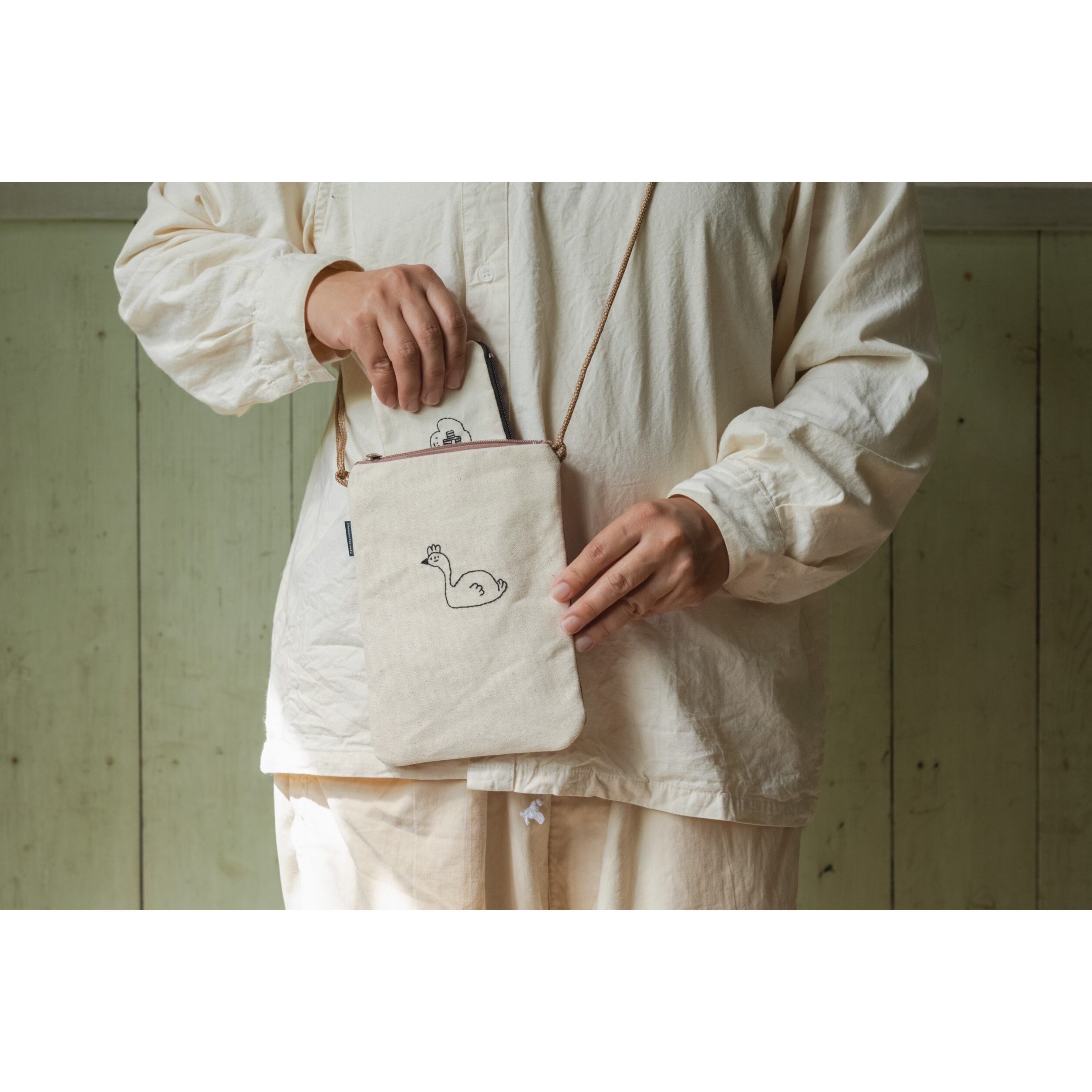 ゆる絵刺繍の細長ポシェット