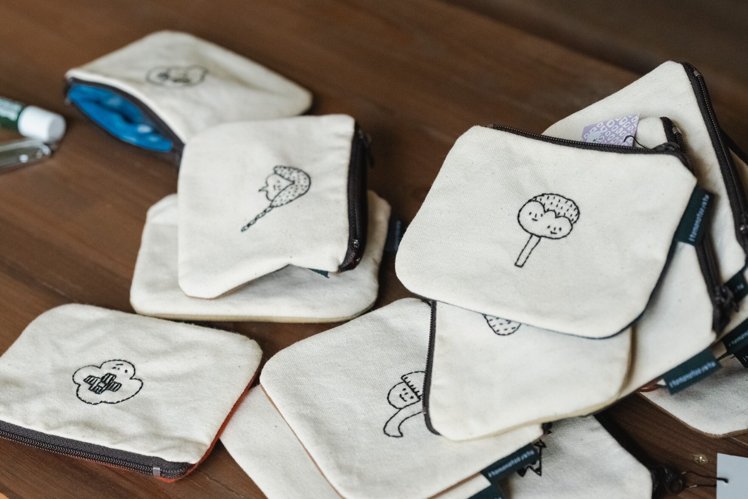 こちらの商品は、オリジナルのゆるーいイラスト"ゆる絵"をモチーフにした小さめポーチです。